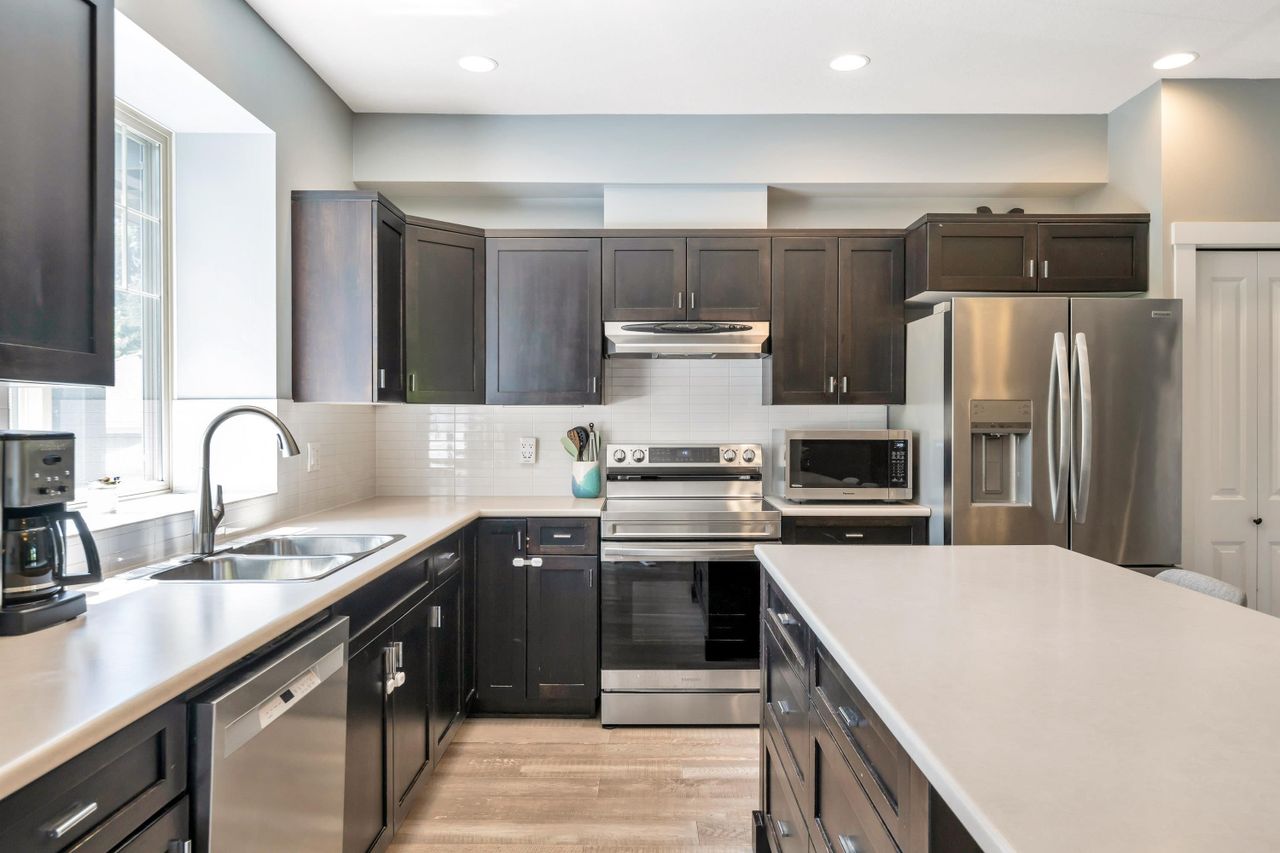 Fall in love with Fort Langley living! This charming 4 bed, 4 bath rowhome blends modern updates with small-town warmth—plus, no strata fees! The bright kitchen with new stainless steel appliances and a large island is perfect for family gatherings. Relax in the inviting living room with a cozy gas fireplace and oversized windows with peaceful views. Upstairs features engineered hardwood, and the finished basement offers a huge rec room and 4th bedroom. With a new roof, furnace, A/C, and fresh exterior paint, it’s move-in ready—steps to trails, cafés, and the Fraser River!
